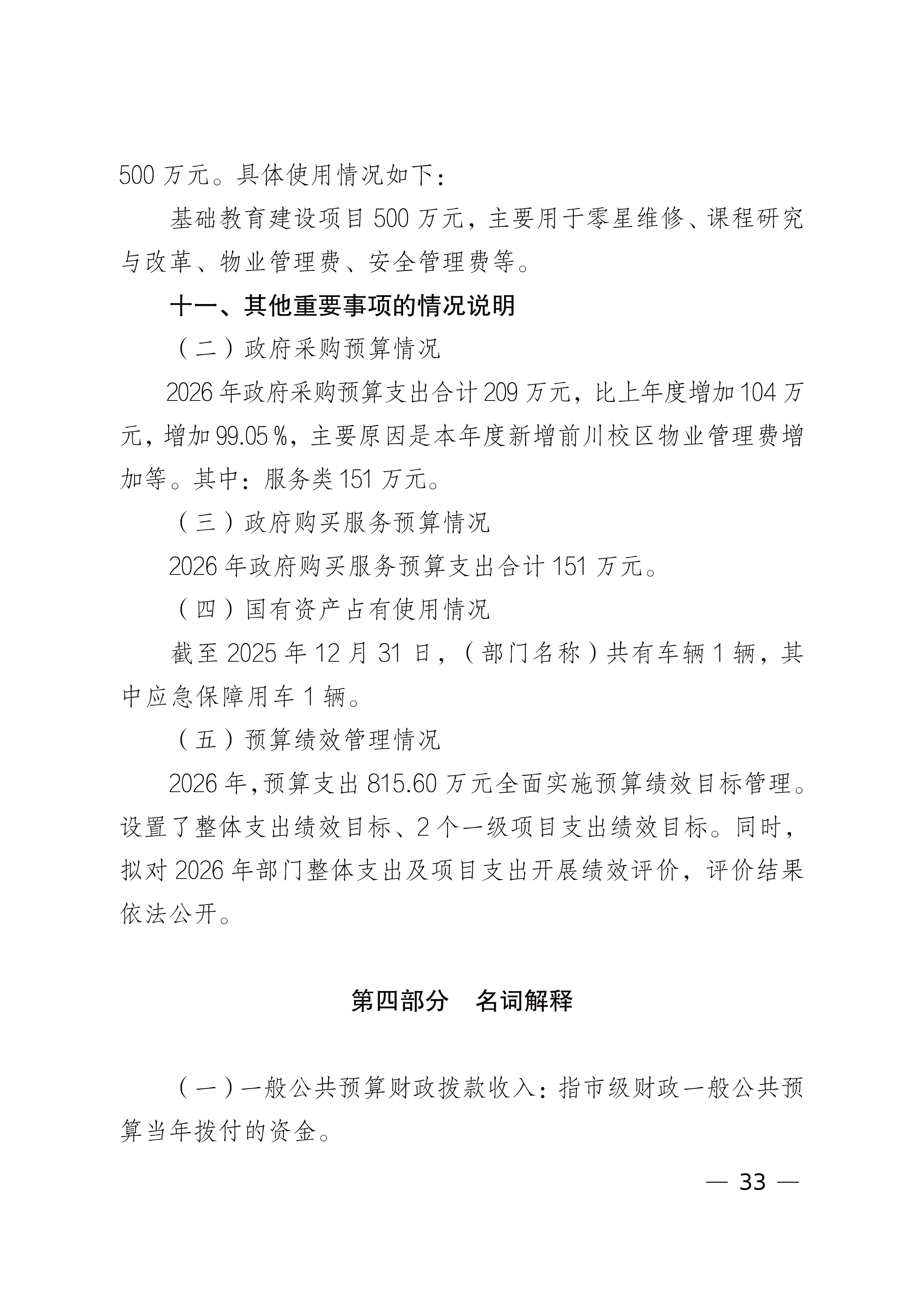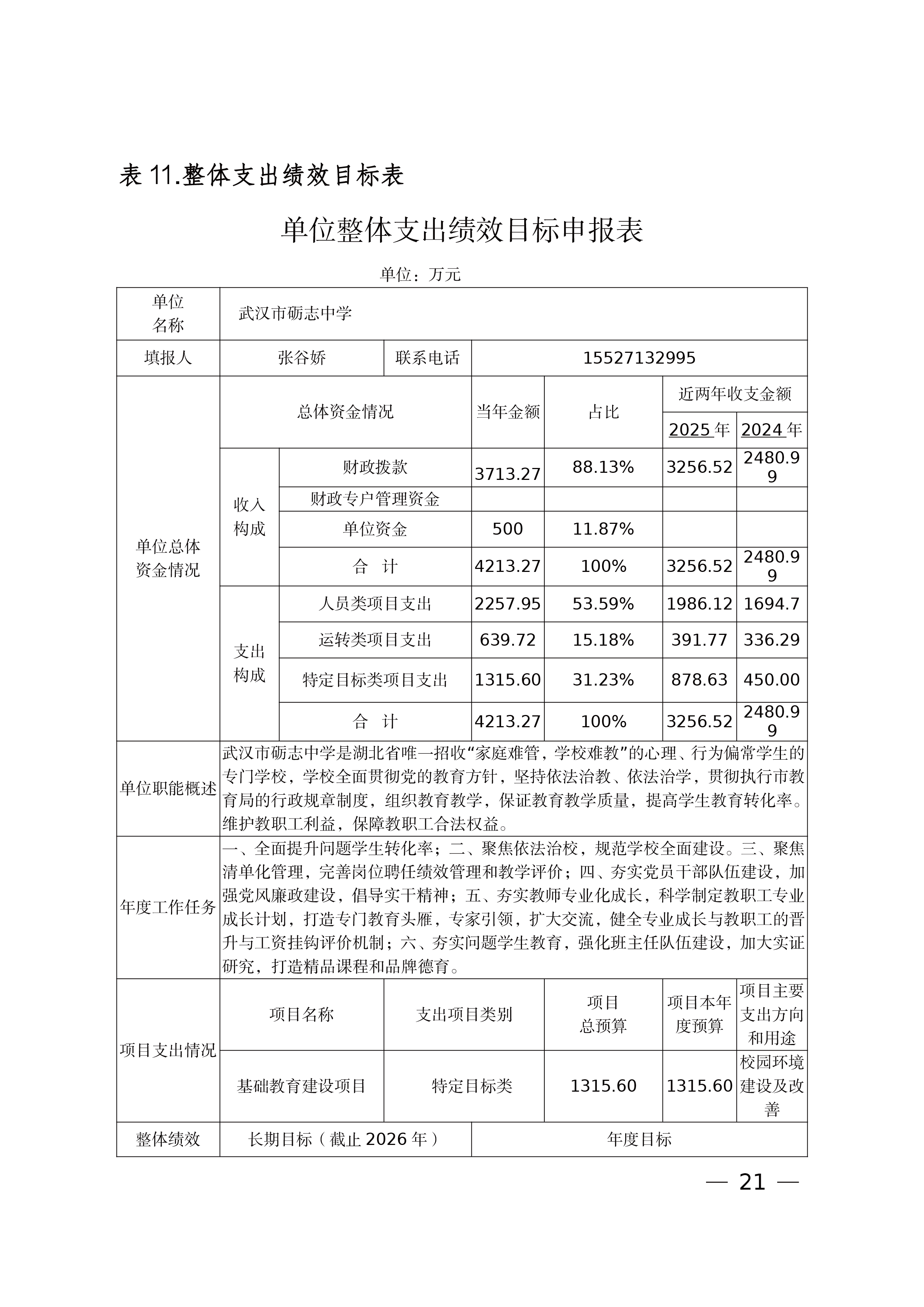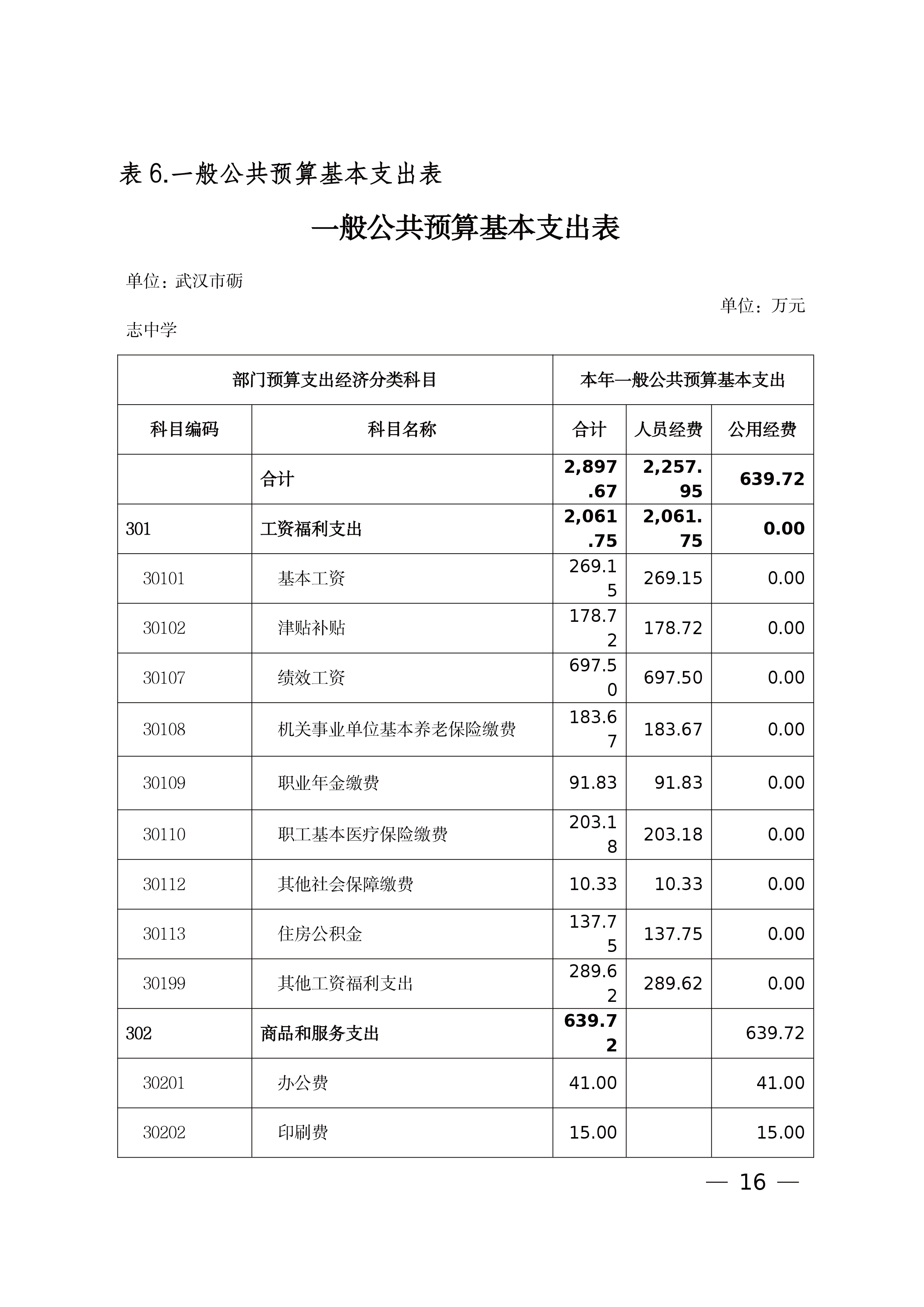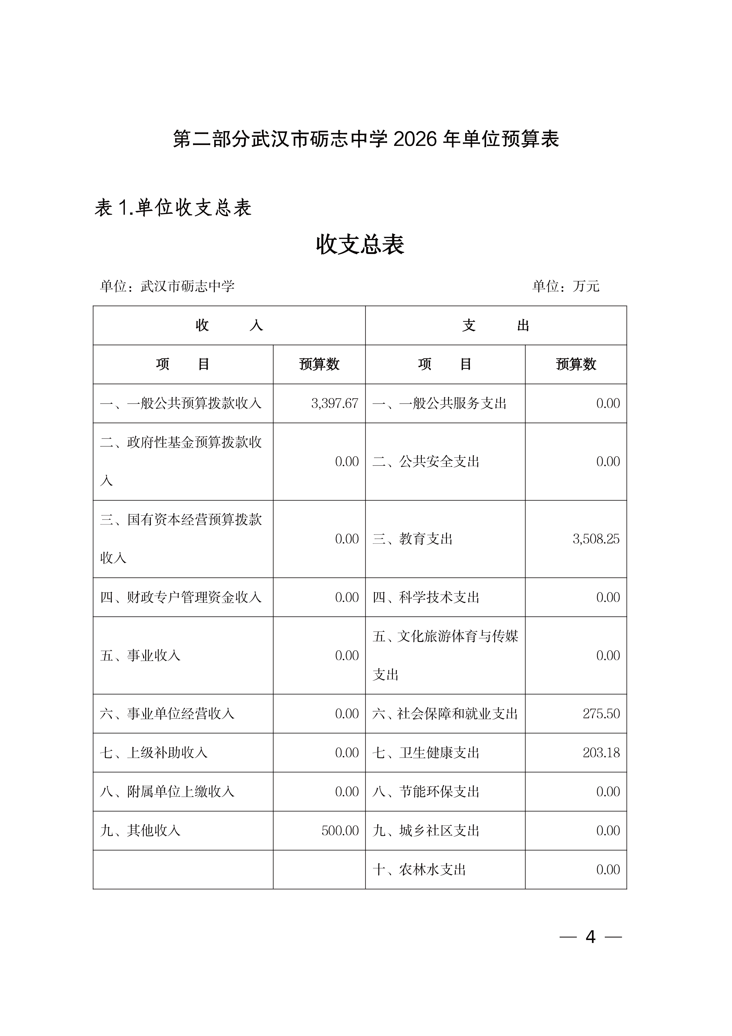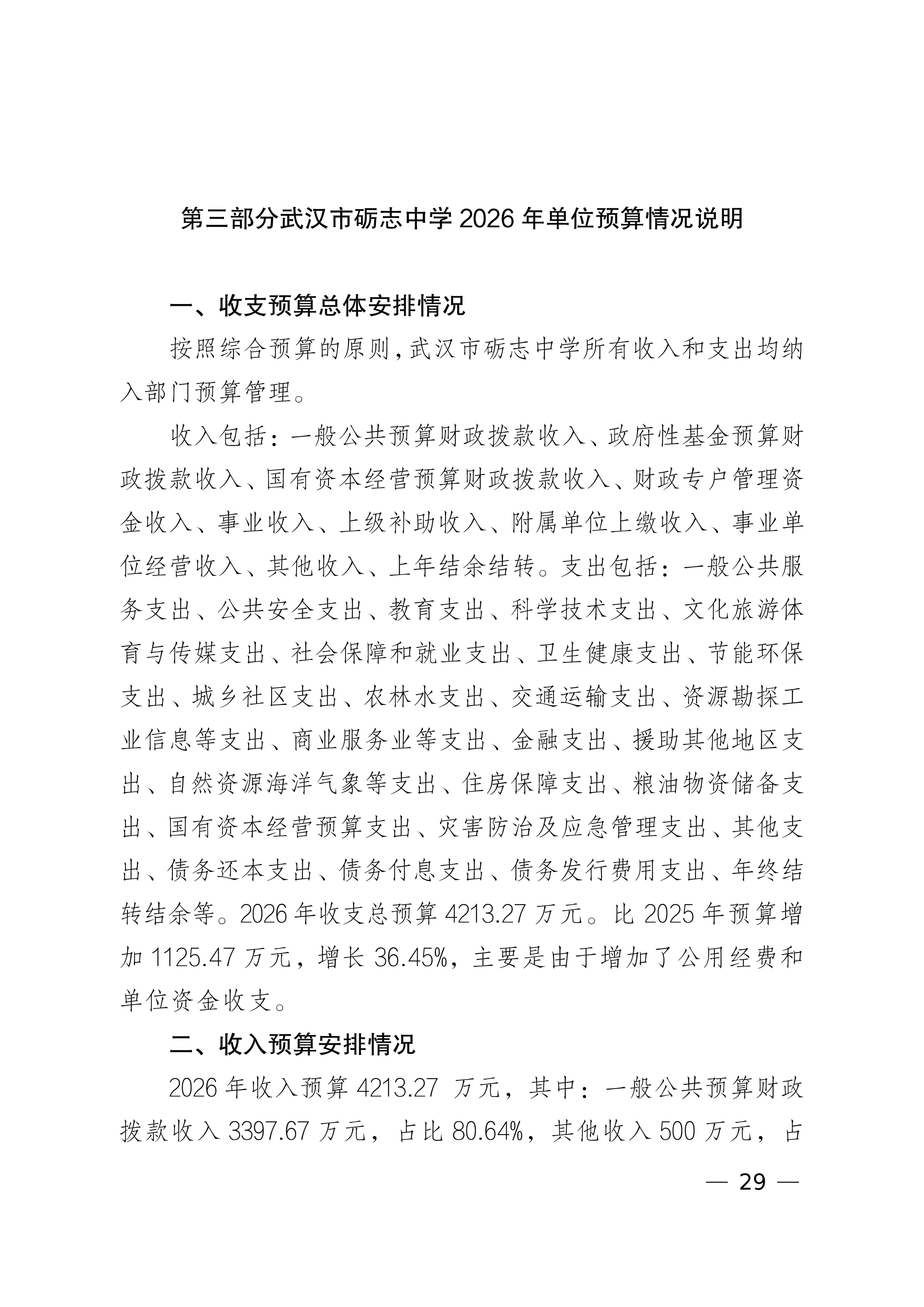 武汉市砺志中学 2026 年单位预算