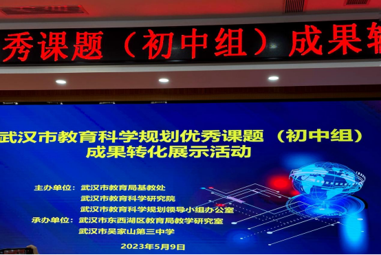 023年5月9日,武汉市教育科学规划课题(初中组)成果转化展示活动在武汉市吴家山三中举行。我校教科室负责人参加了此次活动。
