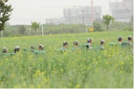 上午7时,随着指挥员的一声令下,徒步远足活动正式开始,同学们身着整洁的迷彩服,背着军被,提着水杯,穿着运动鞋,在嘹亮的口号声中出发,沿着崎岖的山路,踏着春天的脚步,坚韧、自信、团结、乐观地向着未来——出发!