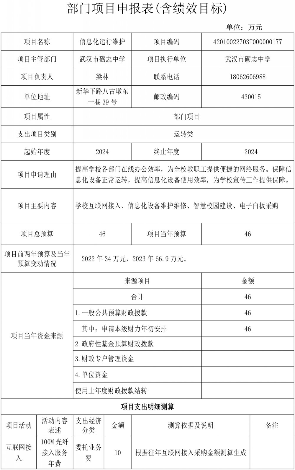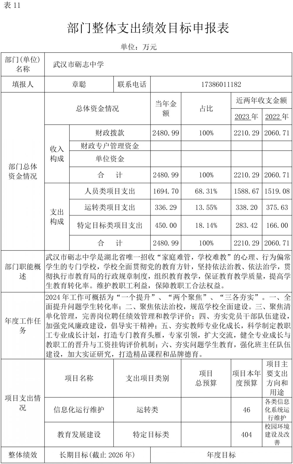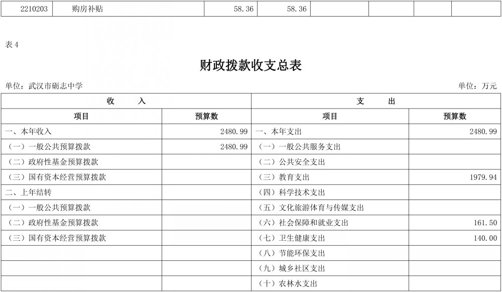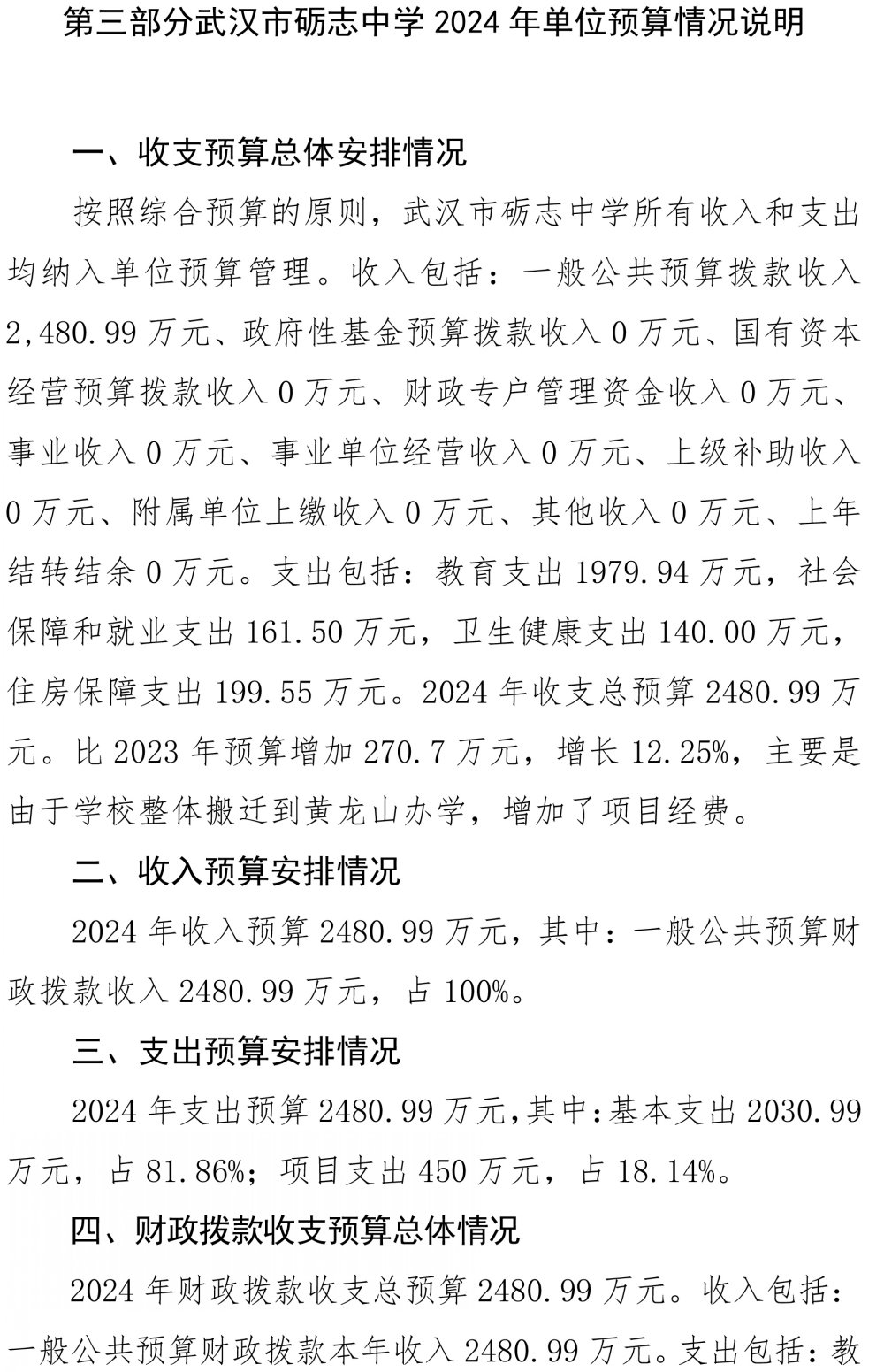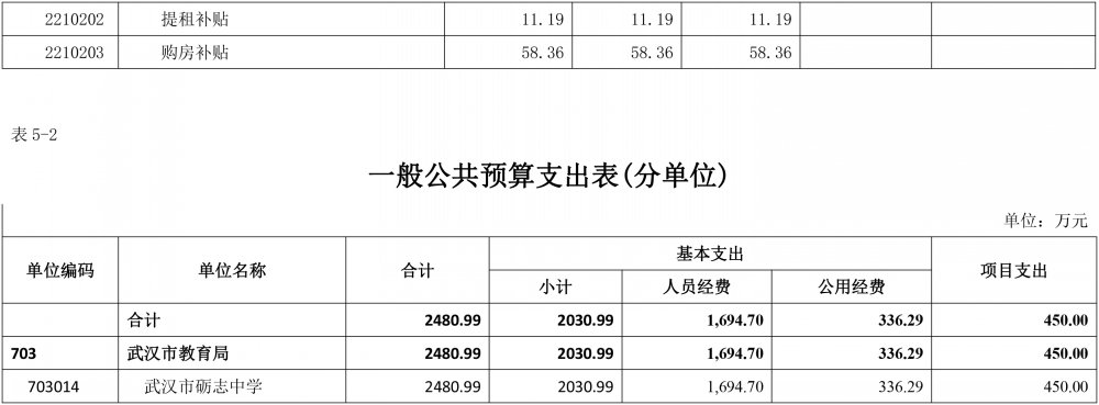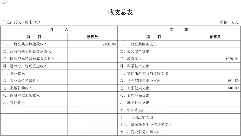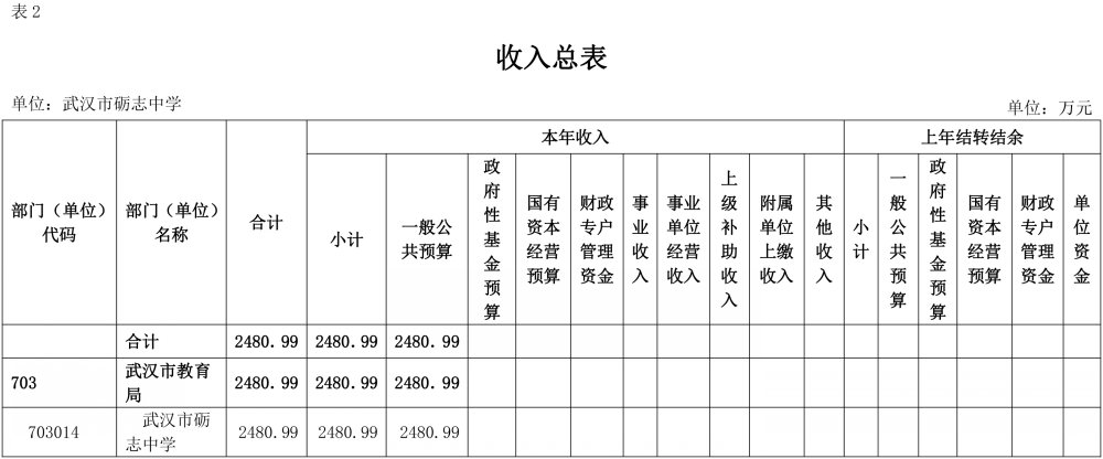 武汉市砺志中学2024年部门预算公开