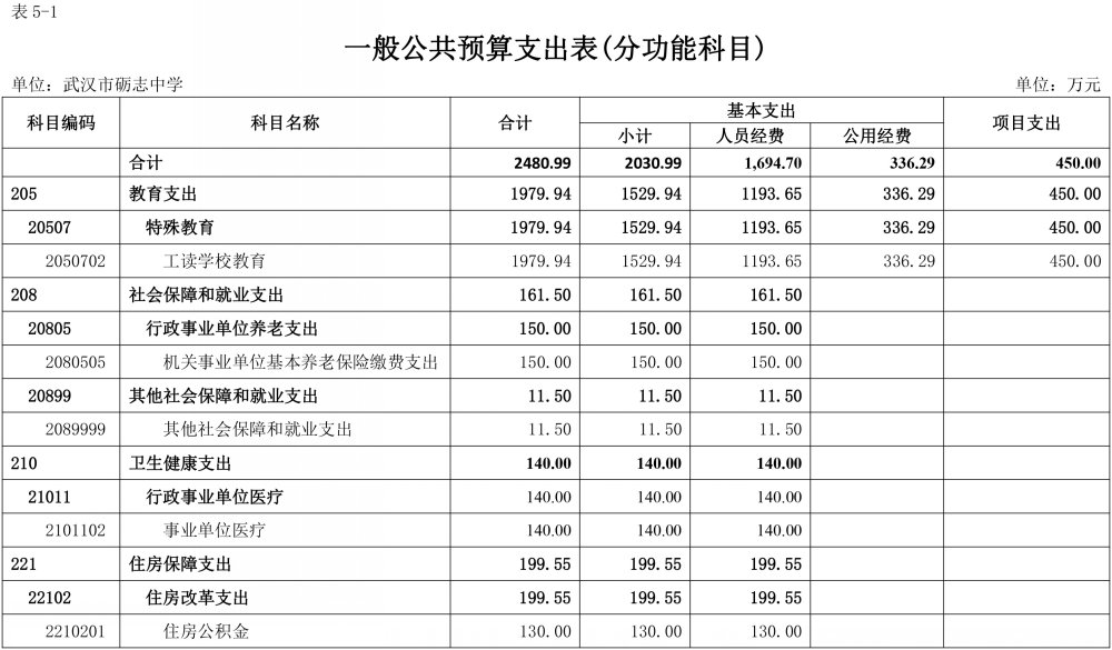 2022年度武汉市砺志中学部门决算