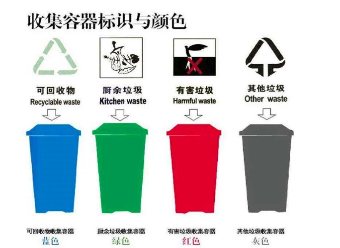 关于垃圾分类,我们还有很多的路要走这些关于垃圾分类的小知识 你必须要知道 可回收物收集容器为蓝色餐厨垃圾收集容器为绿色有害垃圾收集容器为红色其它垃...